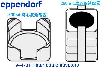 A-4-81額定工作容量4×500mL,可直接將500mL離心瓶載入吊籃中離心。當使用175-400mL離心瓶時,轉(zhuǎn)頭提供了250mL、400mL圓底適配器。對于175m、225LmL和250mL錐形離心瓶,除250mL適配器外還需使用離心瓶制造商提供的響應瓶墊方可正常工作。