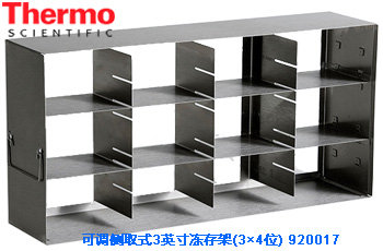 可調(diào)側(cè)取式3英寸凍存架(3×4位) | Thermo | 920017 | 4個(gè)/套 | 款式:3層×4個(gè)3英寸凍存盒 外形尺寸: 寬度:5.4 in.(13.7cm) 深度:22.1 in.(55.9 cm) 高度:11.6 in.(29.5cm) 適用于: Forma 905/906立式; 994/995雙門(mén)超低溫冰箱下兩層 每層隔板可排4/5個(gè)凍存架 | 詢(xún)價(jià) |