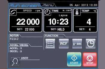Himac CR22N落地式大容量高速冷凍離心機(jī)采用5.7 "彩色觸幕屏控制,GUI圖形界面,輕松地操作系統(tǒng)或通過觸摸顯示屏上的圖標(biāo)選擇各種菜單和功能;