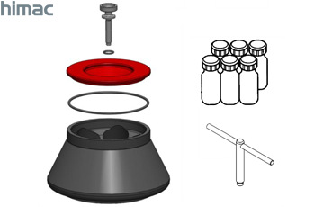 500mL角轉(zhuǎn)頭由轉(zhuǎn)頭主體Rotor body、轉(zhuǎn)頭蓋Rotor cover、蓋子鎖定手柄Cover-locking knob、手柄含氟橡膠小墊圈(Fluorine-contained rubber)、轉(zhuǎn)頭蓋O-型密封墊圈(Nitrile rubber)組成。