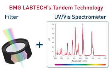 FluoStar Omega基于 BMG LABTECH 獨(dú)特的Tandem Technology——分光光度計(jì)全波長(zhǎng)吸光度光譜儀和酶標(biāo)儀高靈敏度固定波長(zhǎng)濾光片串聯(lián)檢測(cè)。先進(jìn)的CCD光譜儀能夠以每孔一秒的超快掃描速度和1 nm分辨率完成樣品220-1000 nm范圍紫外可見(jiàn)光完整吸收光譜的掃描。