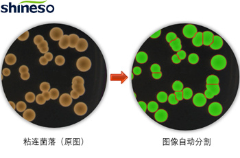 菌落粘連分割:自動分割相互粘連的菌落,鏈狀菌落由用戶選擇分割或不分割 | |||