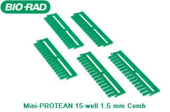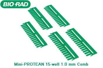 0.75mm 15孔電泳梳 | Bio-Rad | 1653355 | 5個/套 | Mini-P Comb, 15-well, 0.75mm, 20μL for Mini-Protean Cell Use with 0.75 mm glass plates (165-3310). 單個齒孔寬度:3.35 mm 最大可上樣品量:20 μL | 詢價 |