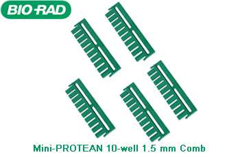 1.5mm 10孔電泳梳 | Bio-Rad | 1653365 | 5個/套 | Mini-P Comb, 10-well, 1.5 mm, 66μL for Mini-Protean Electrophoresis Cell Use with 1.5 mm glass plates (165-3312). 單個齒孔寬度:5.08 mm 最大可上樣品量:66 μL | 詢價 |