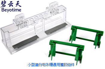 碧云天蛋白電泳槽Mini-Pro-Gel的制膠通用組件,包括灌膠架、夾膠框和密封墊,可與伯樂Mini Protean-treta及國(guó)產(chǎn)同類小型蛋白垂直電泳槽良好兼容。