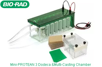 伯樂Mini-PROTEAN 3 多板凝膠灌膠器(Mini-PROTEAN 3 Multi-Casting Chamber,簡(jiǎn)稱多板制膠器),可同時(shí)灌制12塊厚度為 0.75、1.0 或 1.5 mm 的小型凝膠。因此,常與伯樂Mini-PROTEAN 3 Dodeca 小型高通量電泳槽組合,進(jìn)行小型蛋白凝膠的高通量電泳。