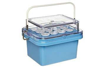 Nalgene Quick Chill Unit便攜式低溫冷卻盒為聚碳酸酯外殼,樣品管插入到頂部插槽中(但與絕緣溶液隔離,管上的標(biāo)簽不會脫落,無污染),裝置底部為封閉內(nèi)槽,用無毒絕緣溶液預(yù)填充作高效冷媒。該快速冷卻設(shè)備為獨立裝置,無需采用干冰、乙醇和丙酮等傳統(tǒng)冷卻劑,使用安全簡便,可重復(fù)使用,最快可在45分鐘內(nèi)重新恢復(fù)到使用狀態(tài),以便進行下一批樣品的操作。
