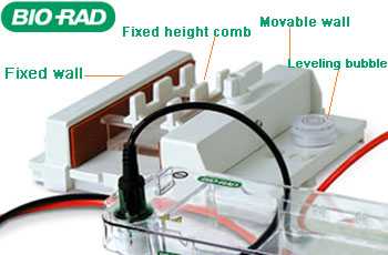 制膠器由帶固定檔墻的底座和一個可拆卸可移動帶定位手柄的凝膠擋墻(Movable wall of gel caster)、水平檢測尺(泡)組成?;顒訐鯄筛鶕?jù)凝膠托盤的長度靈活移動,從而適應(yīng)不同尺寸的紫外透射凝膠托盤,并且適用于所有Sub-Cell系列的電泳槽。