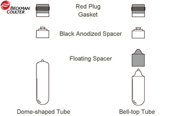 標準容量的5.1mL Quick-Seal熱封管在固定角轉頭及近垂直轉頭中使用時,為確保離心管的頂部在強大的側向離心力作用下不發(fā)生變形,須使用配套適配器(Quick-Seal Tube Spacer 342883)提供支撐。