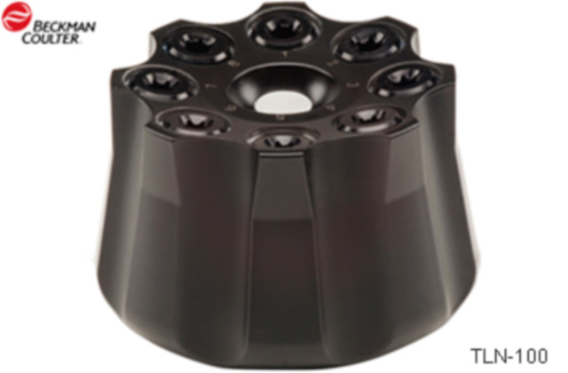 TLN-100近垂直轉(zhuǎn)頭可用于質(zhì)粒DNA、病毒、蛋白、細(xì)胞器等的沉降,脂蛋白、脂質(zhì)等SF漂浮分離,最大樣品容量8×3.9 mL圓底離心管,適用于Beckman Optima MAX-XP、Optima MAX-TL、Optima TL、Optima TLX和TL-100臺式超速離心機。