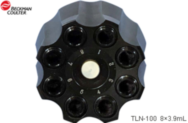 TLN-100近垂直轉(zhuǎn)頭的離心孔/管與轉(zhuǎn)軸成9°角,可用于質(zhì)粒DNA、病毒、蛋白、細(xì)胞器等組分沉分離,或脂蛋白、脂質(zhì)等SF漂浮分離,較角轉(zhuǎn)頭極大縮短離心運行時間,適用于Beckman Optima MAX-XP、Optima MAX-TL、Optima TL、Optima TLX和TL-100臺式超速離心機。