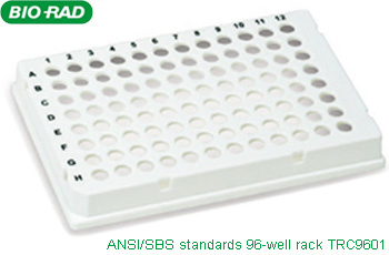 ANSI/SBS標準PCR樣品管座 | Bio-Rad | TRC9601 | 10個/包 | 96-place rack ANSI/SBS standards, autoclavable, white holds 0.2 and 0.1 ml PCR tubes and plates | 詢價 |