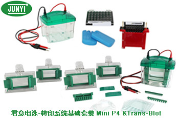 4 | 君意小型蛋白電泳-轉(zhuǎn)印標(biāo)準(zhǔn)套裝 | MTB-003 | 電源-電泳-電轉(zhuǎn)移三合一系統(tǒng) 可獨立實現(xiàn)同步進行4塊小型凝膠跑膠或同步轉(zhuǎn)膜 配置包括: ■ 電泳儀電源(JY300HE) ■ Mini P-4蛋白電泳槽標(biāo)準(zhǔn)套裝(Mini-P4) ■ 2膜小型凝膠轉(zhuǎn)移槽套裝(MTB-00) □ 轉(zhuǎn)移電極模塊(MTE-01) □ 轉(zhuǎn)印滾筒 1個 | 詢價 |
