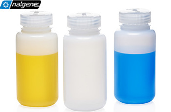 Nalagene 3120-0500廣口離心瓶,瓶身為高密度聚乙烯(high-density polyethylene,HDPE)。HDPE比PC材質(zhì)瓶體的化學(xué)耐受性更好。在室溫條件下,不溶于任何有機(jī)溶劑,耐酸、堿和各種鹽類的腐蝕。