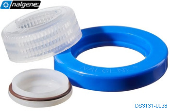 DS3131-0038密封蓋由聚丙烯螺旋外蓋(polypropylene screw closure)和藍色瓶肩部支撐環(huán)(polypropylene shoulder support ring)、Tefzel ETFE插塞式內(nèi)蓋(Tefzel ETFE plug)和Viton氟橡膠O型墊圈(Viton fluoroelastomer O-ring)組成。與帶有直徑38mm瓶蓋的Nalgene 250mL離心瓶3120-0250、3122-0250、3127-0250配合使用時,安裝在平頂部,可在10000xg或更高速度下使用。DS3131-0038可與Nalgene 250mL離心瓶一起高壓滅菌處理。